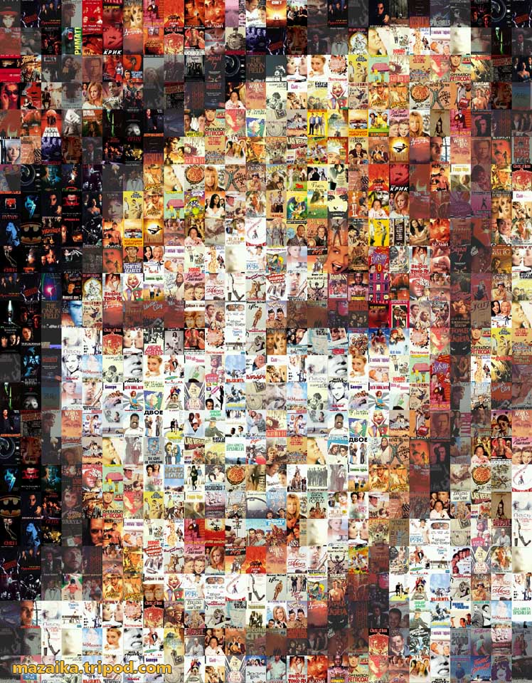 Mosaic from video cassette boxes. 1000 cell picture made from a collection of about 1400 video cassettes.