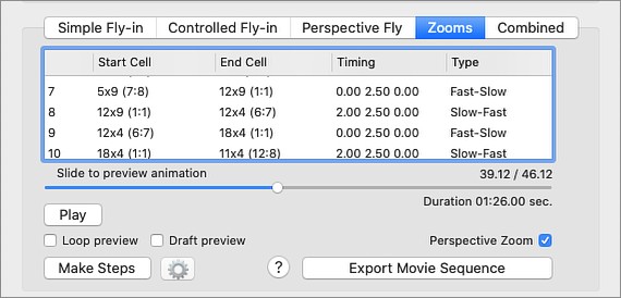 Make Steps - Press this button to bring up Zoom Steps Setup panel